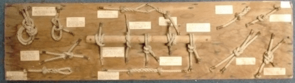 Knot boards are occasionally useful as an educational aid for a whole pack. They are also helpful in inspiring an individual and as a standing demonstration of a fuller range of available knots. And they are a most satisfactory way of dressing a scout hut.