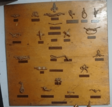 Knot boards are a traditional demonstration of an individual’s skill and a training tool. They tend to be found in Groups with their own hut. An example sits in the 57th Cambridge Fulbourn hut and the 28th Cambridge has two complementary boards, the first with 40 detachable boards.