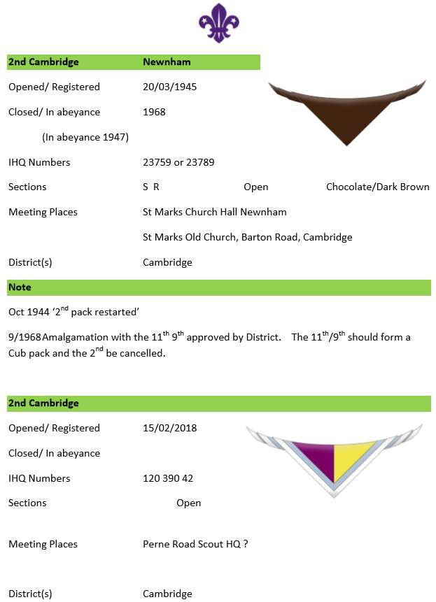 Note 1st District was Cherry Hinton (Col Howards Own) not Fulbourn as entered above.