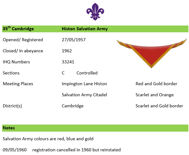 35th Cambridge Cambridge District Scout Archive JWR Archivist May 2020 Share this: Click to share on X (Opens in new window) X Click to share on Facebook (Opens in new window) Facebook Like Loading...
