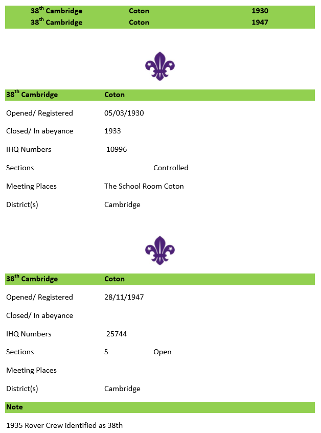 38th Cambridge Cambridge District Scout Archive JWR Archivist Mar 2019 Share this: Click to share on X (Opens in new window) X Click to share on Facebook (Opens in new window) Facebook Like Loading...