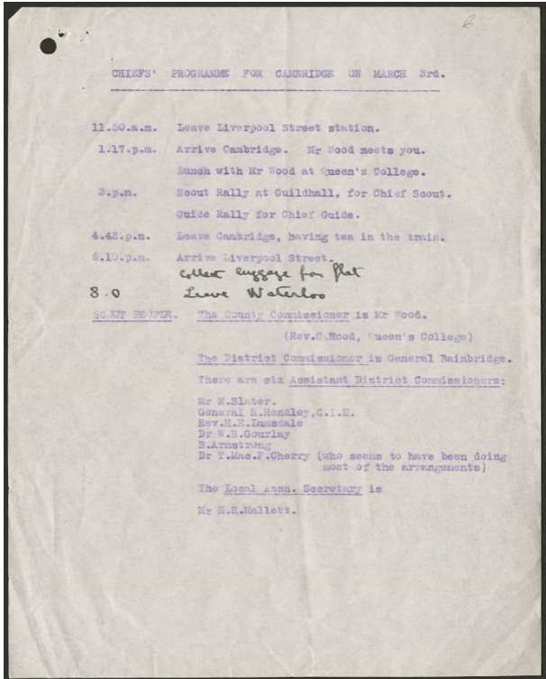 Cherry worked as Scout Master then Commissioner in Cambridge. He was involved with the 7th Cambridge around 1922 – 25.