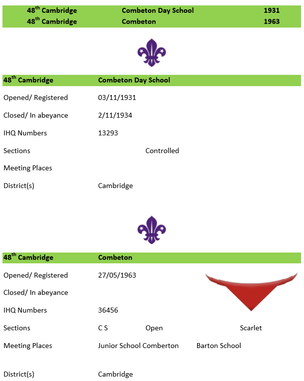 The 1963 group was known as 48th Cambridge (Comberton) Group.