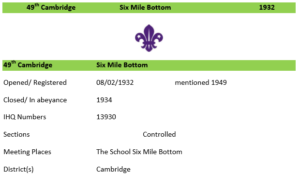 49th Cambridge Cambridge District Scout Archive JWR Archivist Mar 2019 Share this: Click to share on X (Opens in new window) X Click to share on Facebook (Opens in new window) Facebook Like Loading...
