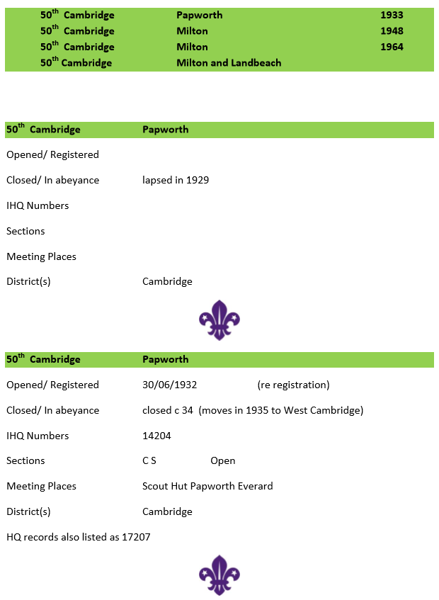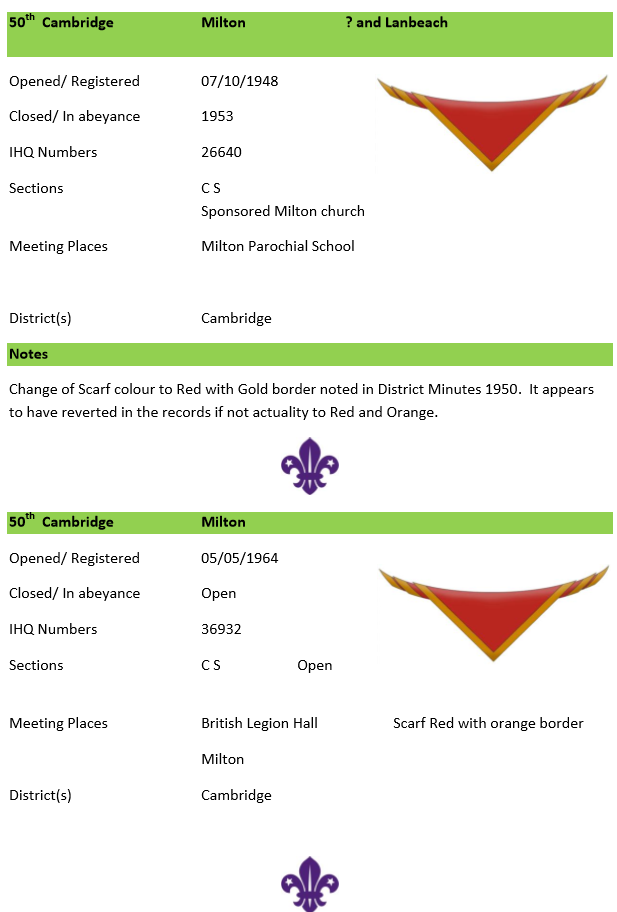 The ‘Landbeach pack’ was recorded as participating in the 40th Anniversary in 1948. The event was held ahead of the registration date of October.