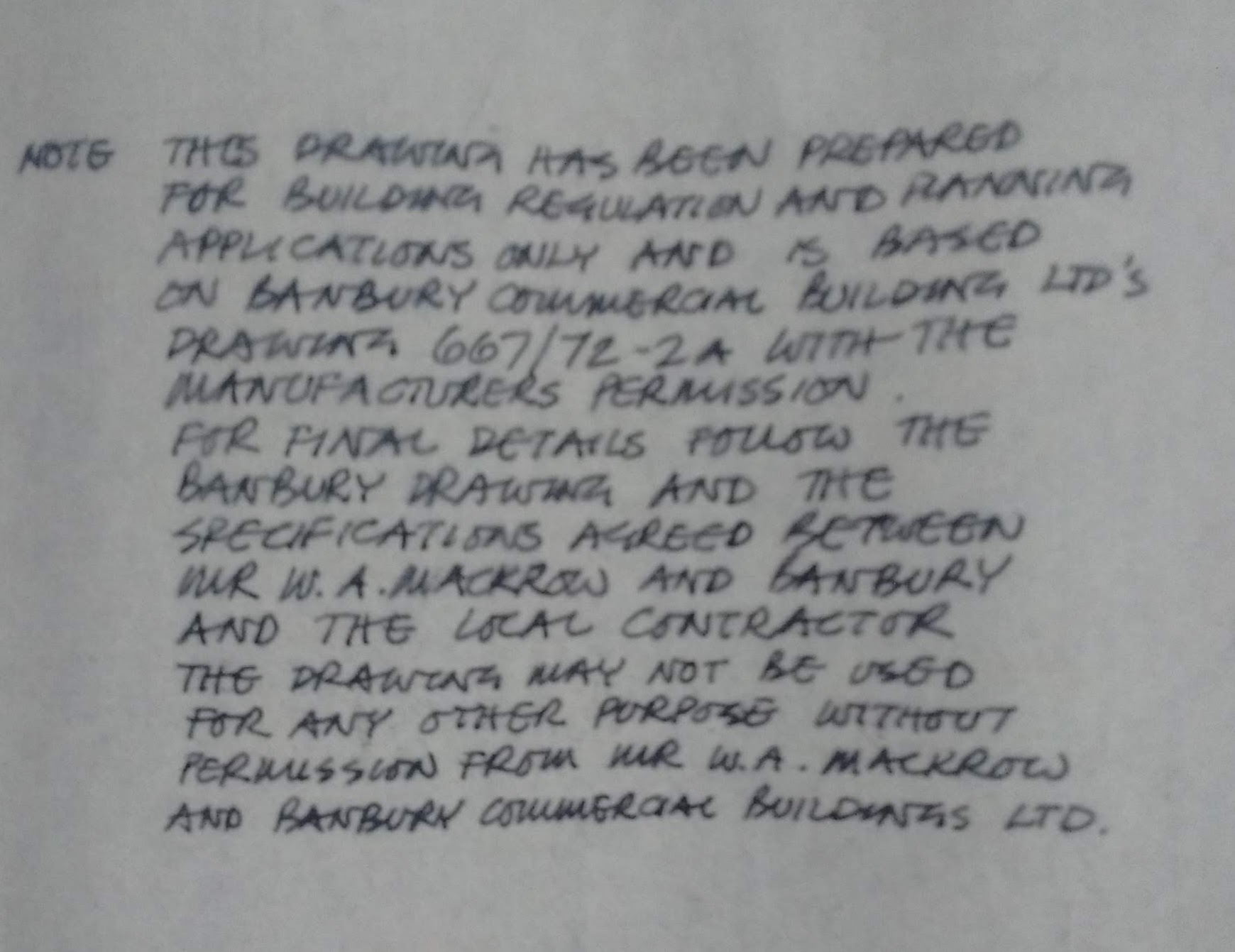 The architects plan, above, differs from the final layout as known post 2000. The toilet block was changed and the kitchen missing from this layout. However, the essential core shape and size remained unaltered.