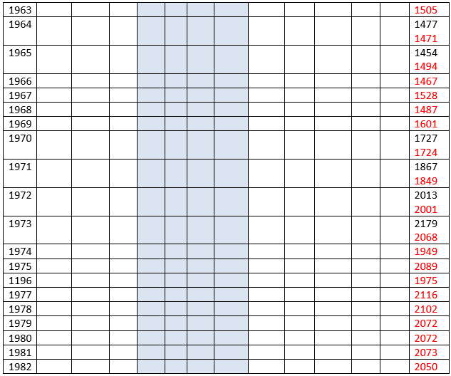 - Numbers declined in the mid 1950’s to rise again strongly 1957 to 1960