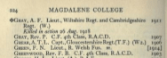 This explains the discrepancy between College of Warrant record (Jesus) and College of War Service record (Magdalene). It is not known with which Troop he worked.
