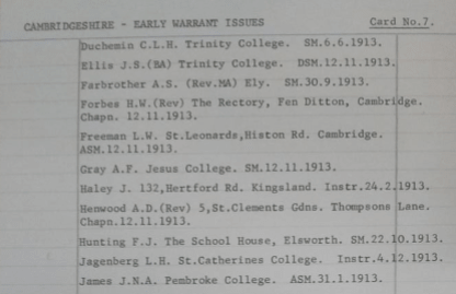 (See HQ list of Cambridgeshire warrants 12/11/1913 SM)