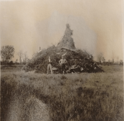Sourcing fuel for the Coronation Beacons was difficult. Mr Gingell gave permission for wood to be taken from Quy Fen. Cambridgeshire is not heavily wooded and the country had depleted its woodland during two world wars. The availability of small stuff may have been further depleted by a thrifty return to traditional fuels in this period of post war austerity. Tyres and used engine oil was added to some beacons.