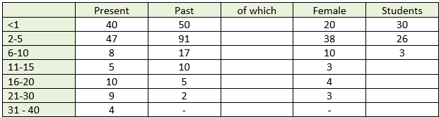 The average length as leader for those leading was 7 years, for those past leaders 4 years.