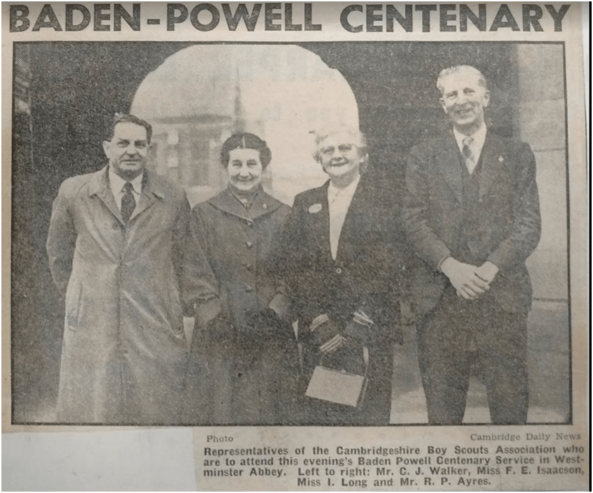 1962 ‘When Miss I.G. Long was asked to start a Wolf Cub pack she did not know anything about the movement. But armed with the Jungle Book, on which the clubs are based, she formed a pack in the parish of St Barnabas and boys came from as far away as Comberton and Abington. That was in 1930, the same year as the St John’s pack began under the leadership of Miss F.E. Isaacson. Both ladies are still working for the cubs’ Cambridge News16/02/1962 Mike Petty