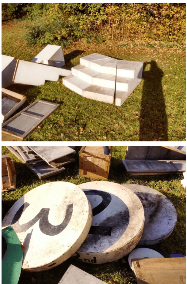 The following photographs are of Cambridge Gang Show props that had been stored at Perne Road. As will be seen most had become damaged by damp, mice, ivy or generally by ‘time’. They are presented without date or distinction – the scripts have not been studied to the point where any such details can be proffered.