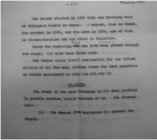 The skills taught fitted men for private service but the letter defends this focus on the grounds that this is where the demand from employer’s exceeded supply, and that the skills can be taught within the time available. It noted that many joined the Police Force or the Services, possibly on the back of a credible reference. Some men may have come to appreciate that they could tolerate the lifestyle, somewhat akin to a military life; or out of desperation. (See ‘The Mint’, T E Lawrence for a view of the life.)