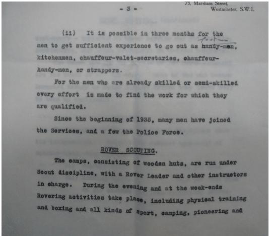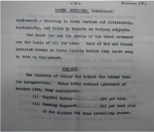 The scheme promised employment after a three month course, open to Scouts and non scouts who are willing to abide by ‘Scout Discipline’. Camps were run along the lines of Scout camps.