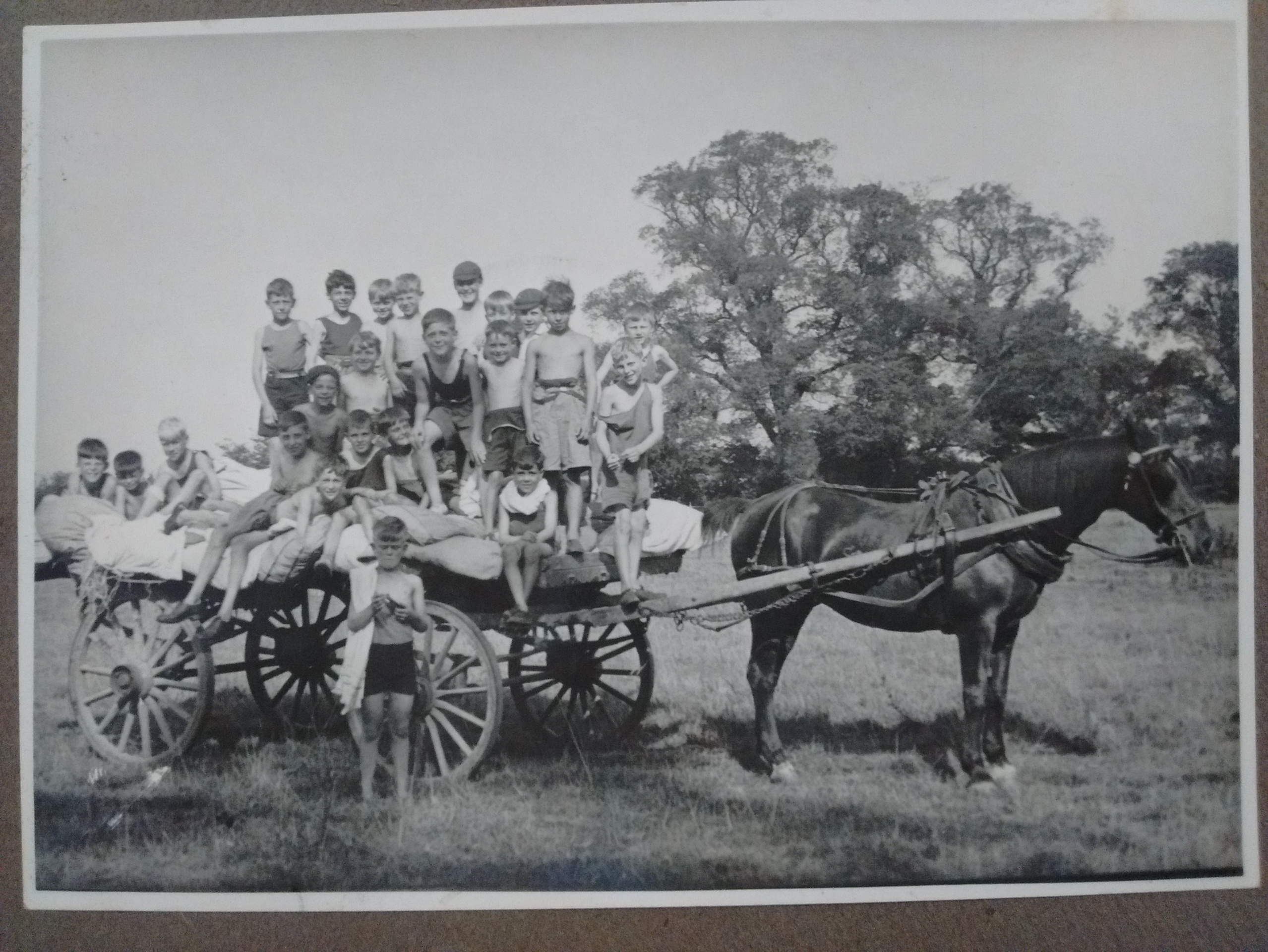 1917 Impington Fruit Farms ‘Our field was also tenanted each night by five jovial cart horses devoured by curiosity and not devoid of humour. The field had a barbed wire fence but … his friends looked over the fence with glee written on their faces as he trotted round and into the tents.’