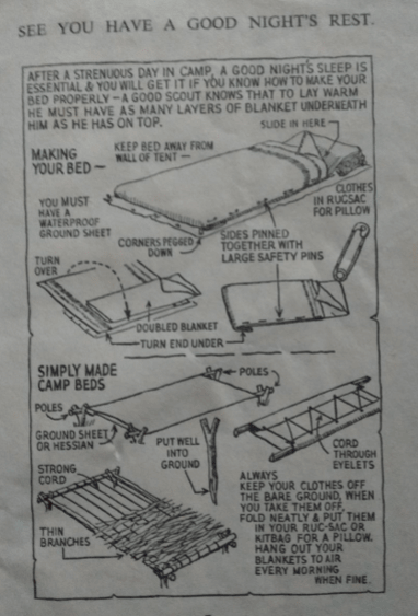 POR 1952 339 Enough sleeping bags or blankets must be provided to enable each Scout to make up a separate bed.