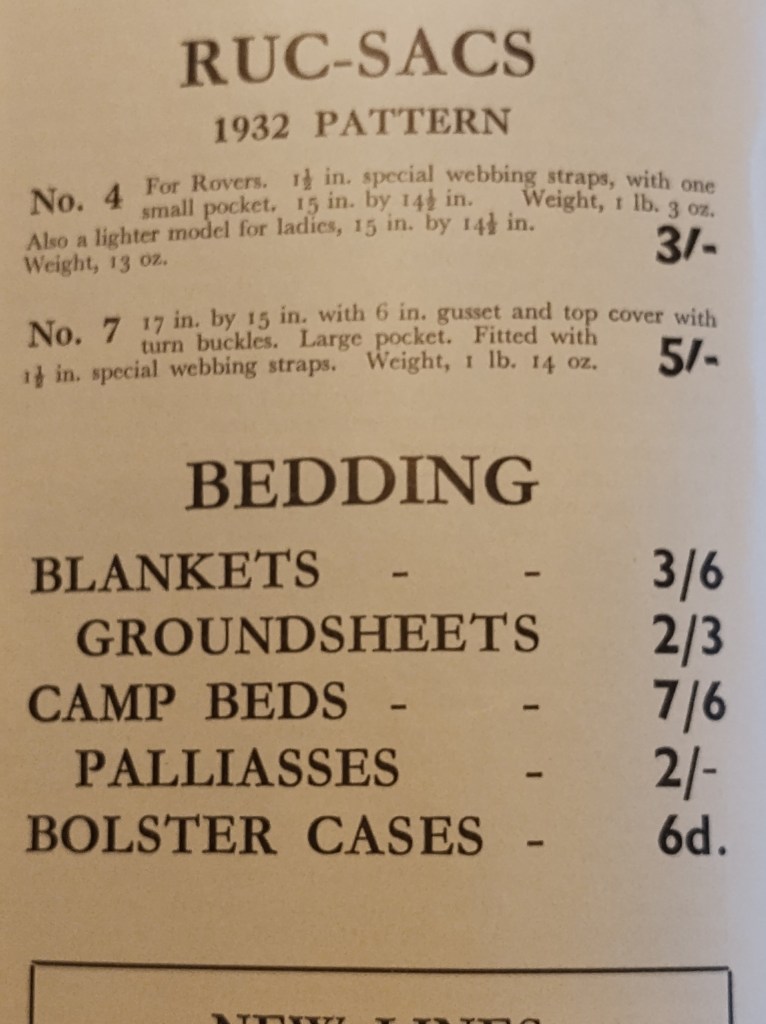 Palliasses were advertised for sale in The Scouter at 2/- each in 1935.