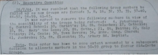 Many Cambridge District troops were clearly closely affiliated with the local church but took village names. An example being when The Reverend Hennessey, Dean of Selwyn and very involved in Cambridge Scouting, became Rector at Fulbourn in 1918. A new Scout Troop was started named the Fulbourn Troop not St Vigors.
