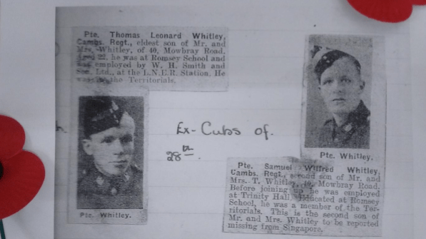 Private Samuel Wilfred Whitley 28th Cambridge 5933027 1st Battalion Cambridgeshire Regiment Died whilst a prisoner of war of ‘cardiac beriberi’ in 1945. He is buried in Yokohama War Cemetery. Born in 1921 he was 24 when he died.