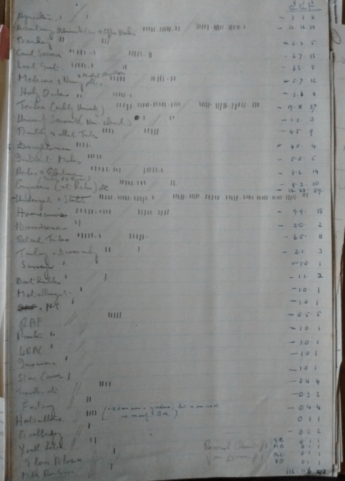 No conclusions from this compilation remain in the archives, nor have I yet come across any actions that may have stemmed from the results. However, he was a man who looked for patterns in the figures when considering a problem.