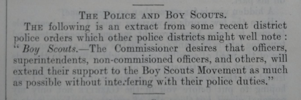 From the beginning the Police were well represented in the Local Association and gave support to the Cambridge Scouts from the highest level. The following is a formal Police encouragement to Officers to become involved. The district involved is not recorded.