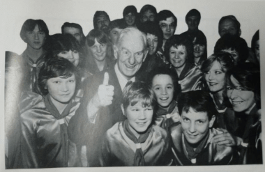 In more recent years, with the National changes in age set up, the Venture Scouts and Rangers have regularly produced annual “Gang Shows” with considerable success; reaching the standard entitling them to wear the special scarf last year, and this year they even had a visit from Ralph Reader himself.’ Ken North 70 years in Scouting (dated 1978).
