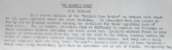 From 60th Cambridge (Leys) Rover Crew report in the Leys Fortnightly late 1946 ‘The first month of this term was devoted to cleaning and redecorating the Den for a second reunion at which 21 Rovers listened to the story of the Scout Relief teams, told by Mr. Ellwood, one of the members. His yarn included the description of a Polish Nativity play in which Hitler and Goering replaced Herod and Pilate.’