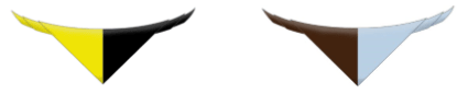 Often scarves were described by colour alone ‘orange and sky blue’ without the cut being mentioned; very occasionally they are described as ‘halved’. Less helpful is ‘dark blue with gold’ that suggests something other than a half and half split. The R/L orientation is rarely mentioned.