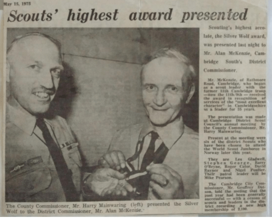 1911 A terrible shock has been dealt to scouts in Cambridge by the death of Scoutmaster William Wright, a second year undergraduate of Queens’ College. Joining when he first came to Cambridge he worked with Scoutmaster Spiller of the 7th and Scoutmaster Curzon of the 1st and had already attained the 24 highest honours badges which secured him the title of ‘Silver Wolf’. Cambridge News 29/09/1911