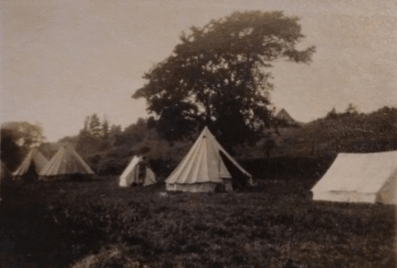 Many tents were hired. Ken North recalled of 1926 ‘We had (as usual) hired tents from Clement Jones. This firm must have been, I think, a forerunner of E H Price & Co as their base was at the same part of St Barnabus Road. I know that one of these which we used for for feeding etc. had a white panel in each section about two feet long, it was not too watertight.’