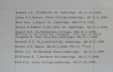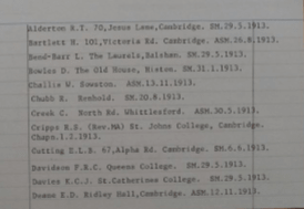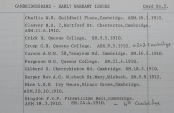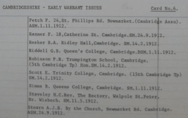 The following list of Cambridge District Warrant holders between the years 1909 and 1914 are from the Gilwell Archives.