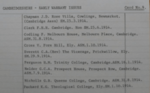 The index is very useful for linking to other work of reference, in particular the locally very useful ‘Cambridge University War List’, which gives further details of most of those who were or had been at the University and fought in the Great War. Whilst limited it can add or confirm a piece of information that points more strongly towards one person or another.