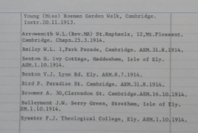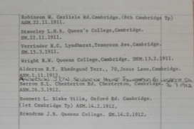 Local addresses are very useful when identifying students, if they are in halls, but the lack of home addresses makes linking with other sources difficult. A student address and a ‘March’ troop brings lack of certainty – why are they listed with Cambridge, do they travel to March (a fair distance), is this an error by address or yet another name with no identified local troop.