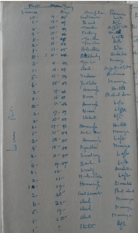 In the late 1940’s W T Thurbon, District Secretary, compiled a list of the reasons given for women resigning form leadership roles, presumably on the return of warrant.